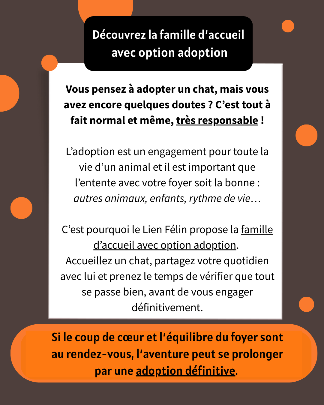 Adopter un chat en association, c’est transformer la solitude en amour, la peur en confiance, l’abandon en renaissance. C’est aussi permettre à un autre chat d'avoir une chance à son tour. Chaque adoption est une histoire d’amour qui commence… et une autre qui peut enfin renaître.